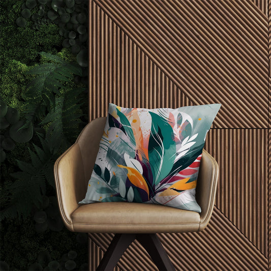 Coloured Abstrace Feather Leaves Outdoor Cushion