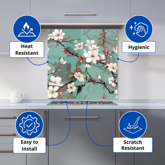 Pink Navy Floral Botanical Pattern Kitchen Splashback