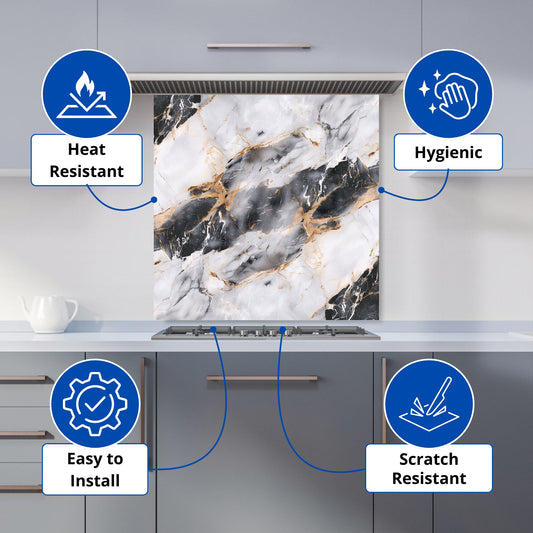 Sleek Yin Yang Marble Design Kitchen Splashback