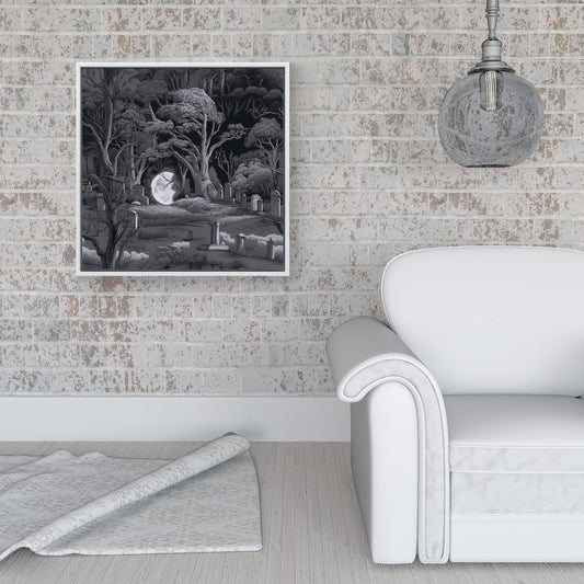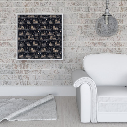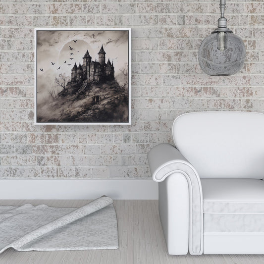 A Realistic Ink Drawing Of A Haunted Castle Framed Canvas