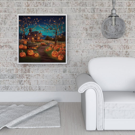 Enchanted Hallowen Pumpkin Patch Framed Canvas