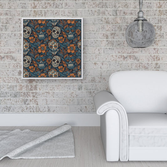 Dia De Los Muertos Skulls Pattern Framed Canvas