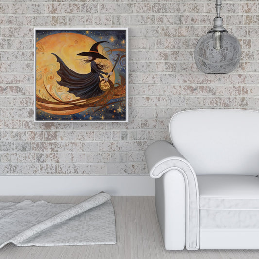 A Watercolor Featuring A Graceful Witch Framed Canvas
