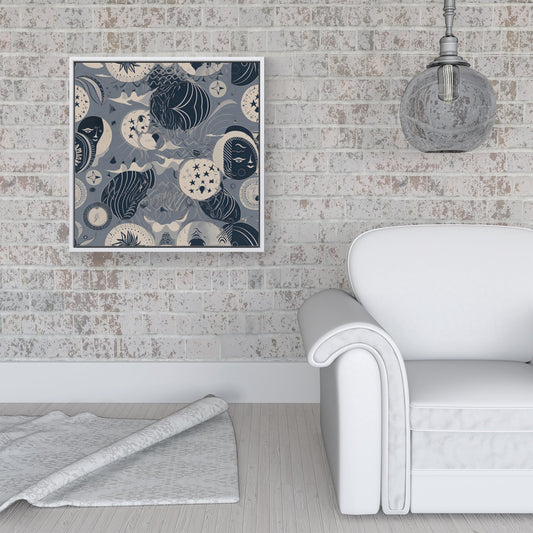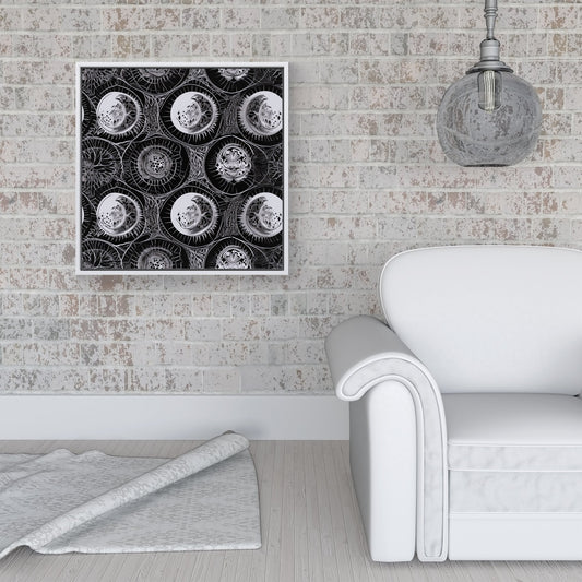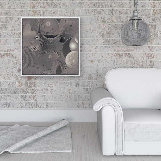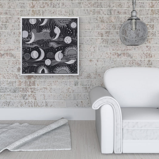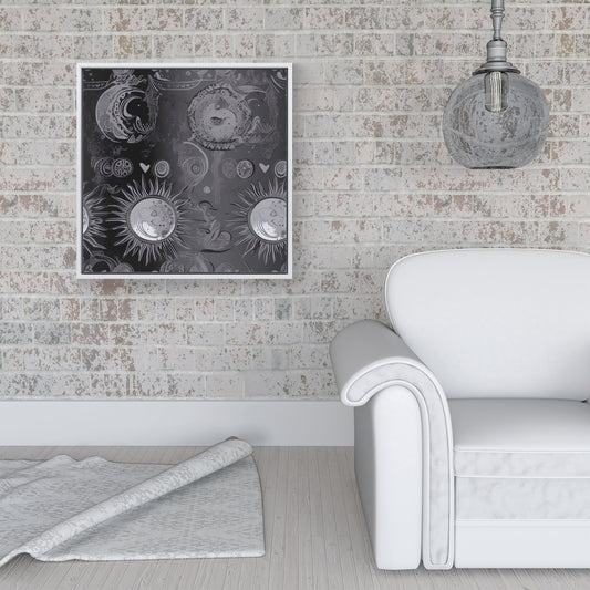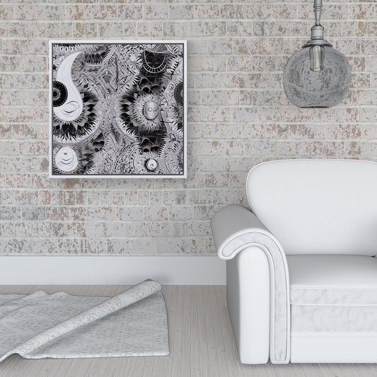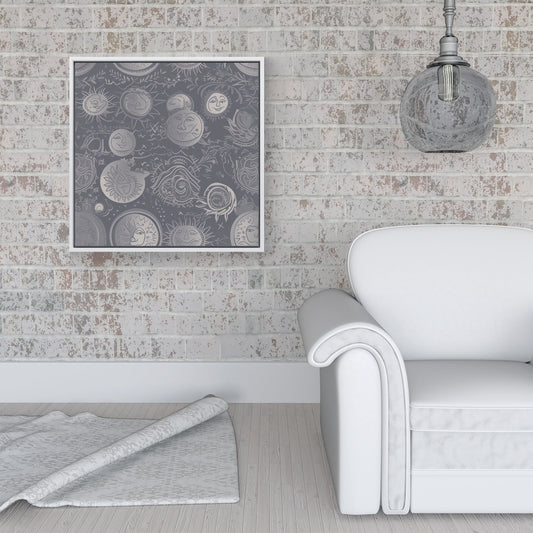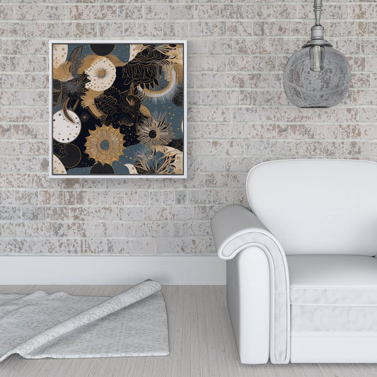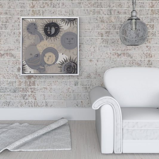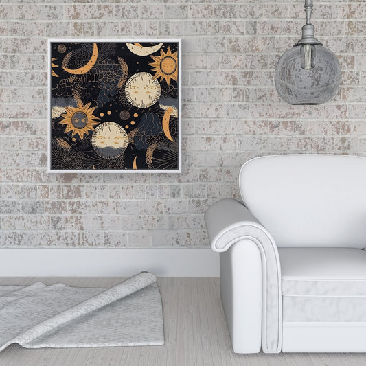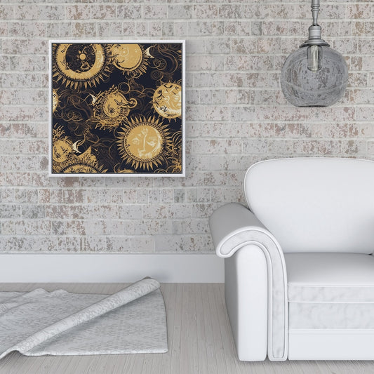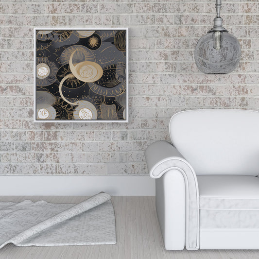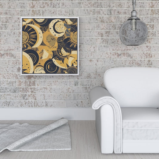 Abstract Silver Gold Sun and Moon Framed Canvas