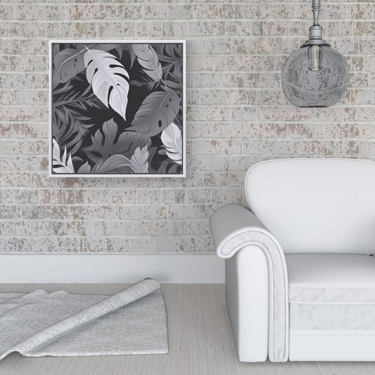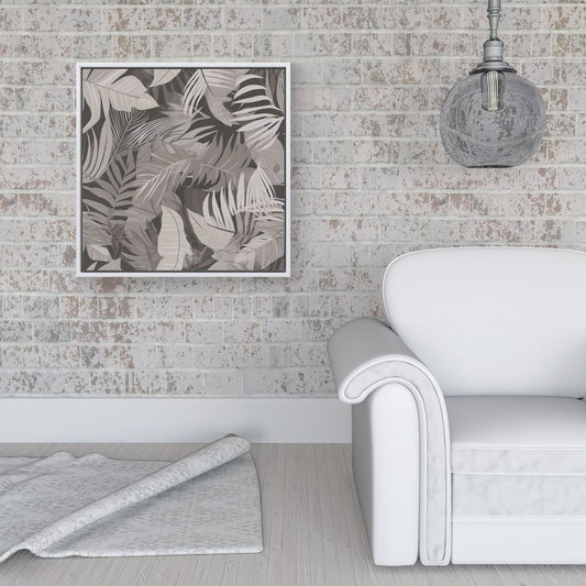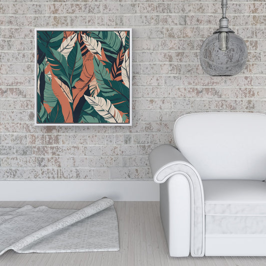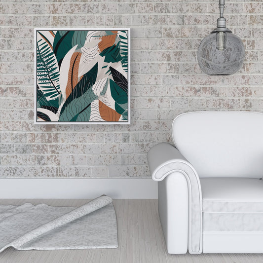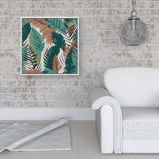 Autumn Tropical Leaves Green Brown Framed Canvas
