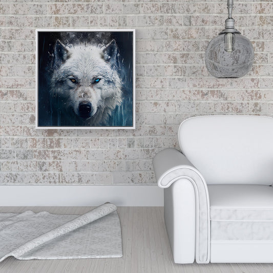 White Wolf Face Splashart Dark Backgrouns Framed Canvas