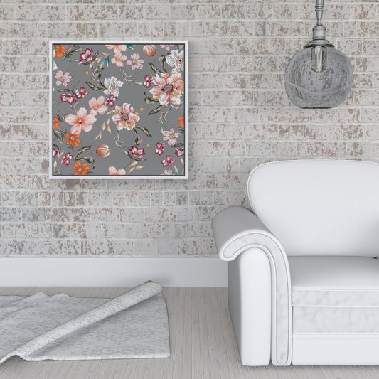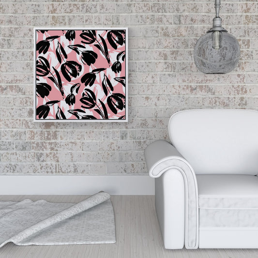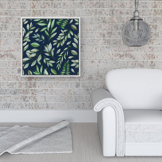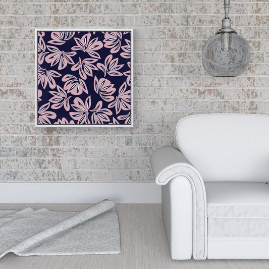 Pink Navy Floral Botanical Pattern Framed Canvas