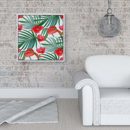Tropical Flowers And Palm Leaves Hawaiian Framed Canvas