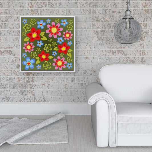 Peony, Lily, Tulip, Daisy Colorful Framed Canvas