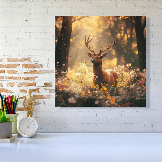 Stag Surrounded By Woodland Flowers Canvas