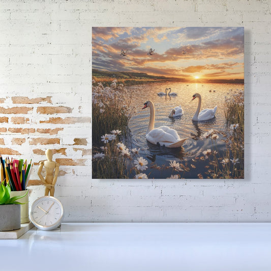 Swans At Sunset In A Beautiful Lake Canvas