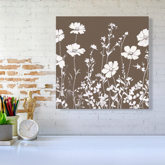 Taupe And White Floral Silhouette Canvas