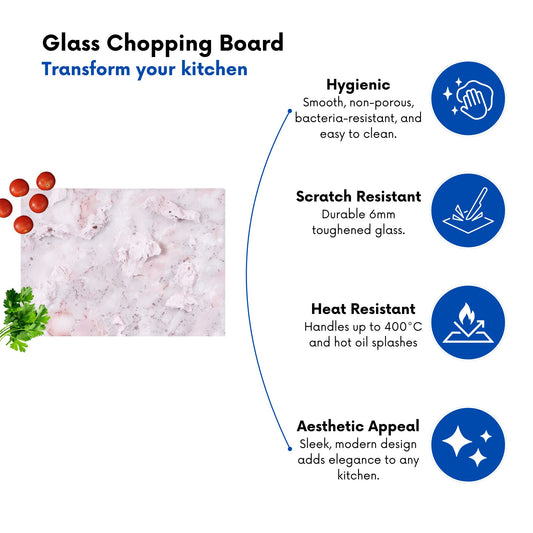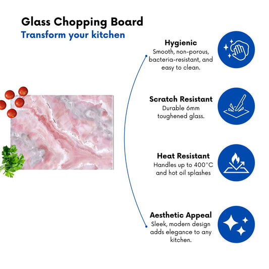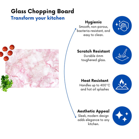 Salmon Pink With Hearts Marble Effect Chopping Board