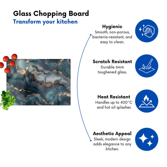 Gold, Blue Marble Effect Chopping Board