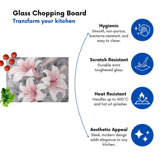 Pink Lilies On Grey Chopping Board