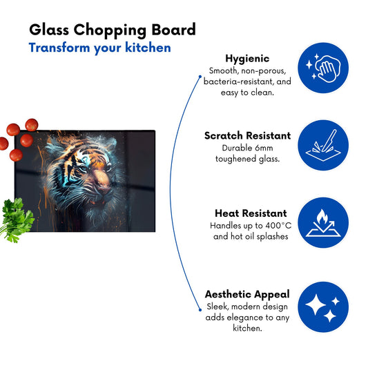 Tiger Face Splashart Dark Background Glass Chopping Board