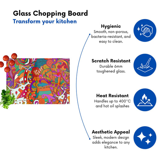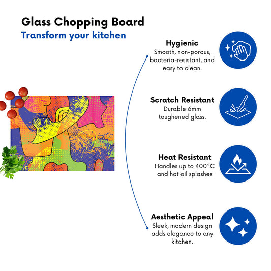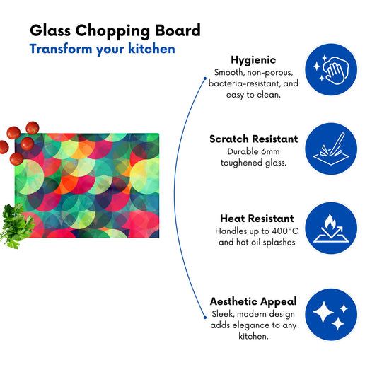 Colourful Grunge Circle Pattern Glass Chopping Board