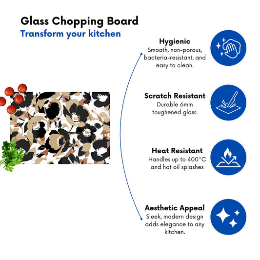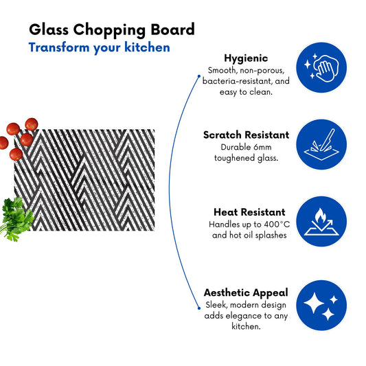 Monochrome Textured Checked Pattern Glass Chopping Board
