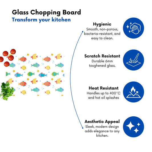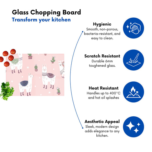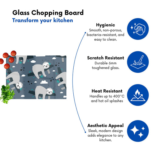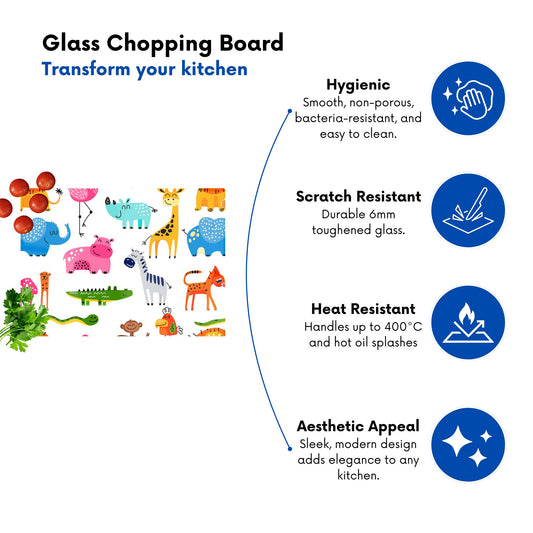 Hand Drawn Cartoon Animals Glass Chopping Board
