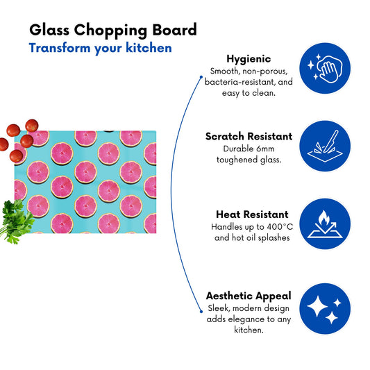 Fruity Pattern Of Pink Grapefruit Glass Chopping Board