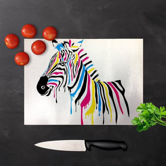 Multi Coloured Zebra Glass Chopping Board