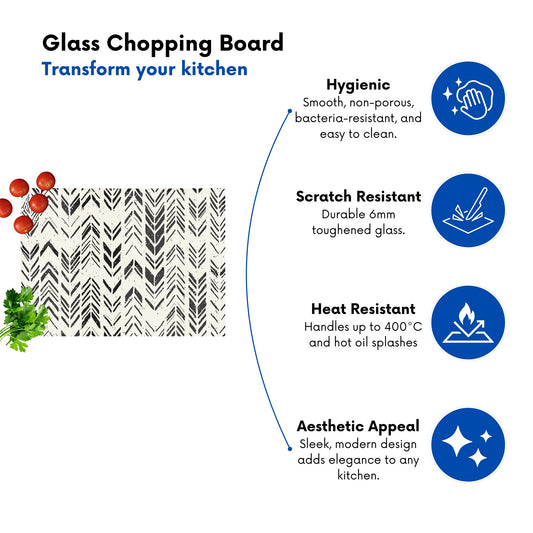 Hand Drawn Chevron Pattern Glass Chopping Board