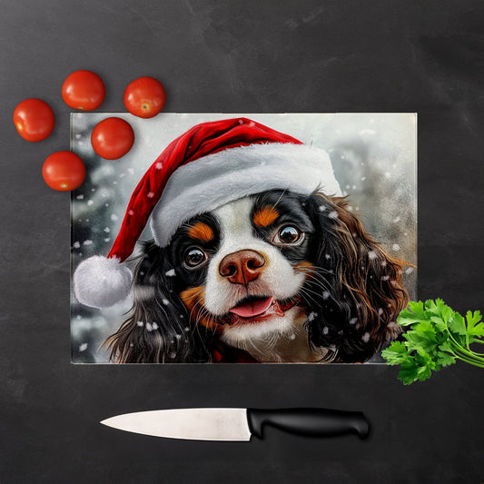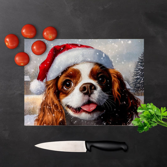 Christmas Cavalier King Charles Spaniel Glass Chopping Board