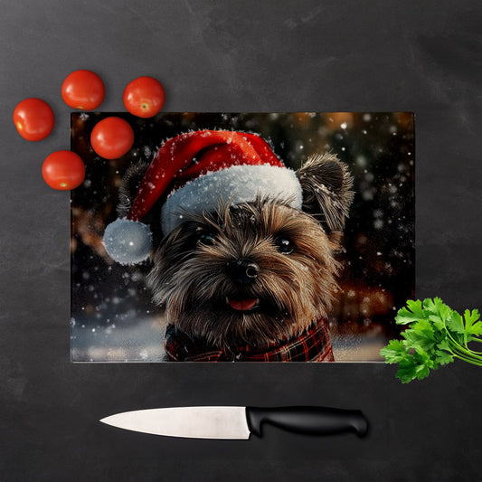 Christmas Cairn Terrier Glass Chopping Board