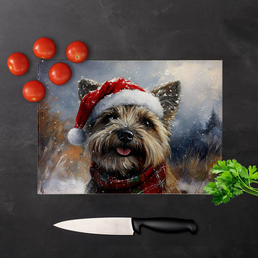 Snowy Christmas Cairn Terrier Glass Chopping Board