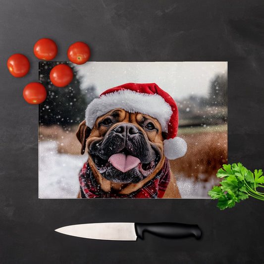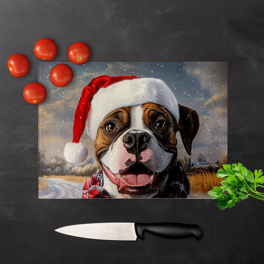 Christmas Boxer Dog Glass Chopping Board