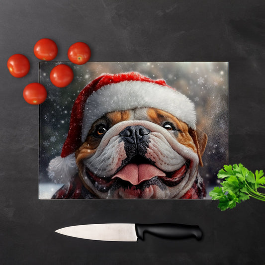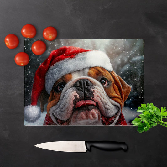 Christmas Bulldog Glass Chopping Board