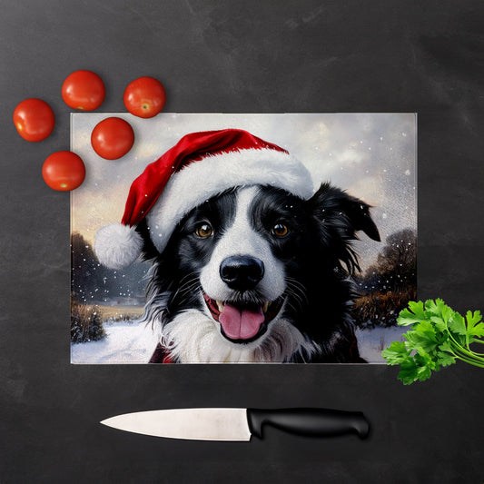 Christmas Border Collie Glass Chopping Board