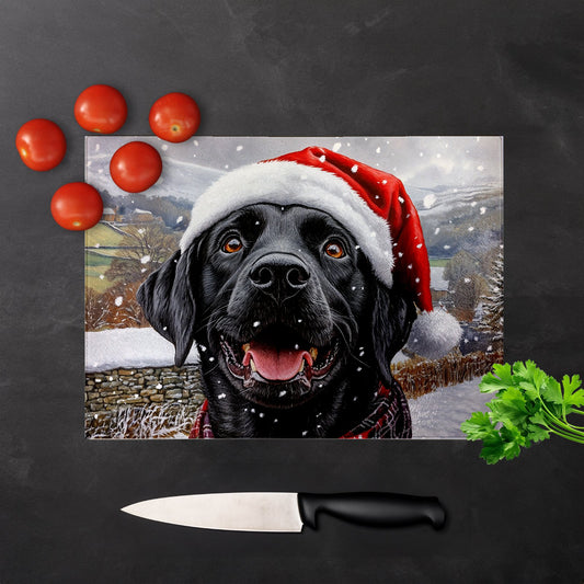 Christmas Black Labrador Glass Chopping Board