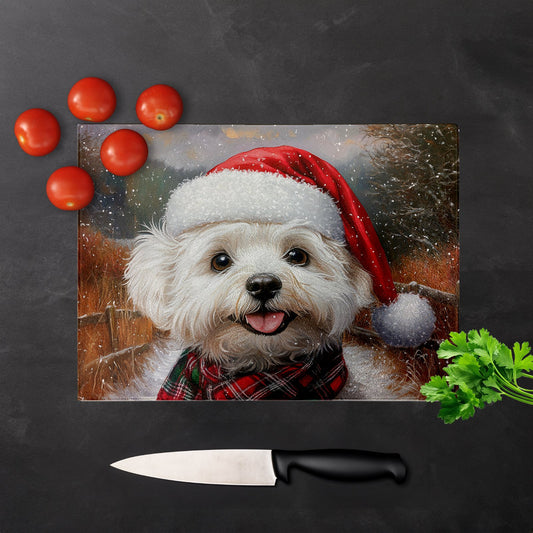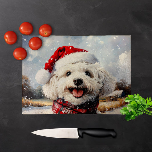 Christmas Bischon Frise Glass Chopping Board