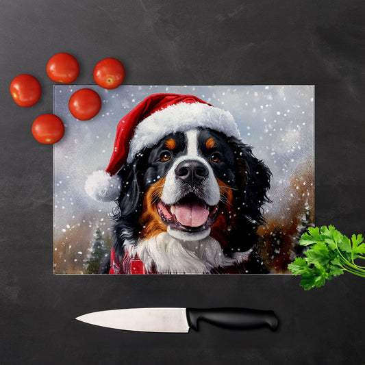 Christmas Bernese Mountain Dog Glass Chopping Board