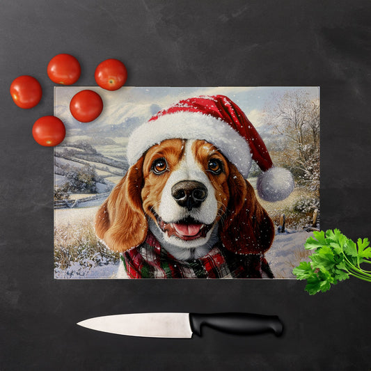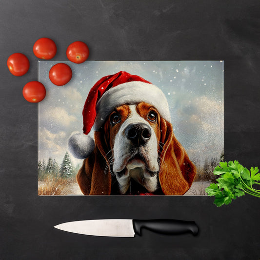 Christmas Bassett Hound Glass Chopping Board