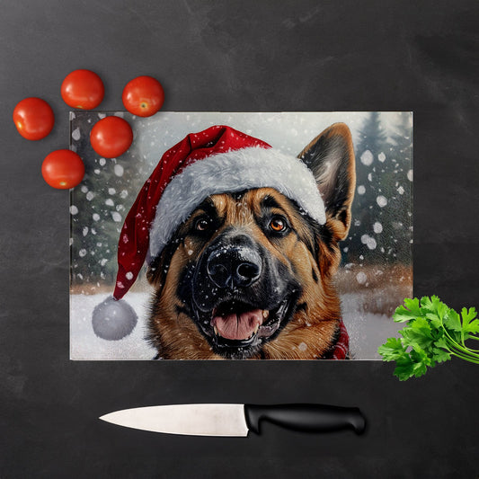 Christmas Alsatian Glass Chopping Board