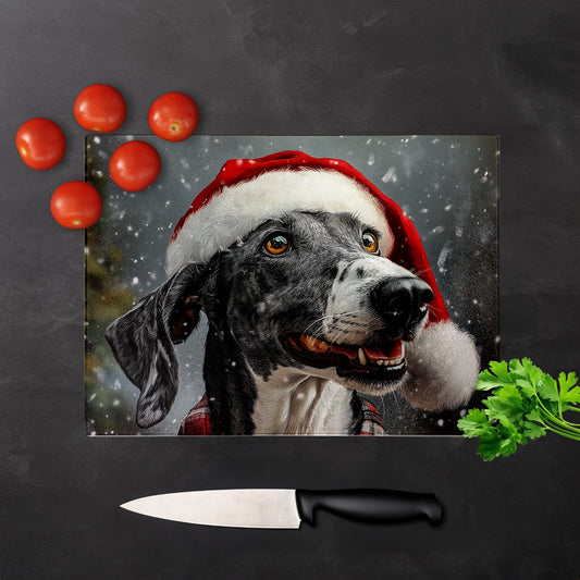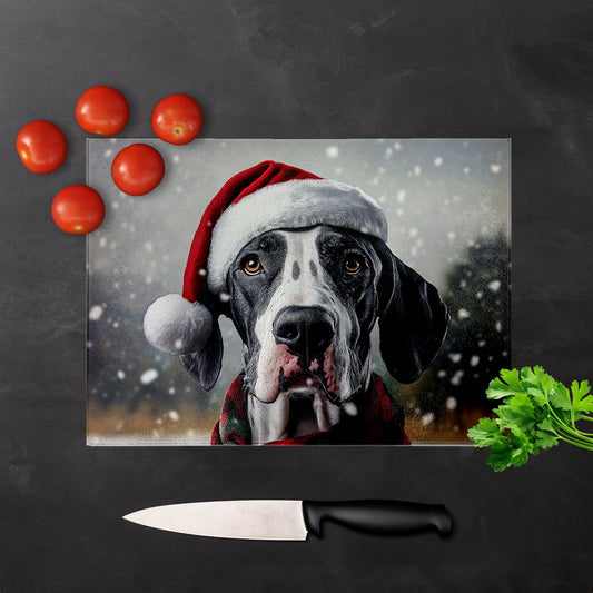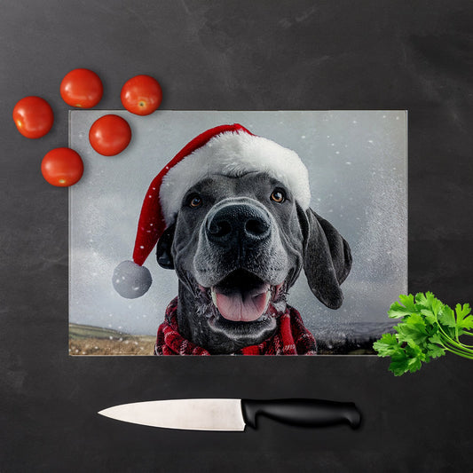 Christmas Great Dane Glass Chopping Board