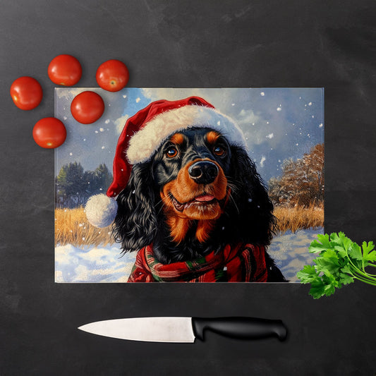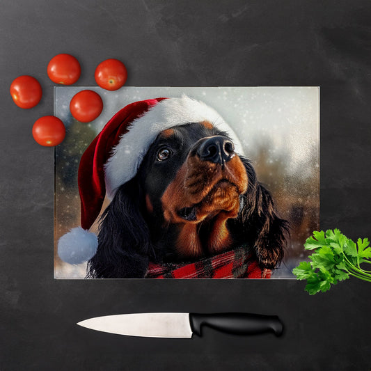 Christmas Gordon Setter Glass Chopping Board