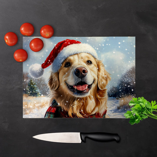 Christmas Golden Retriever Glass Chopping Board
