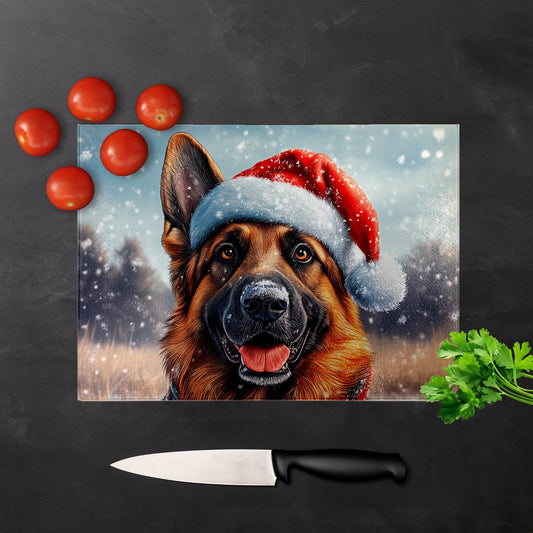 Christmas German Shepherd Glass Chopping Board