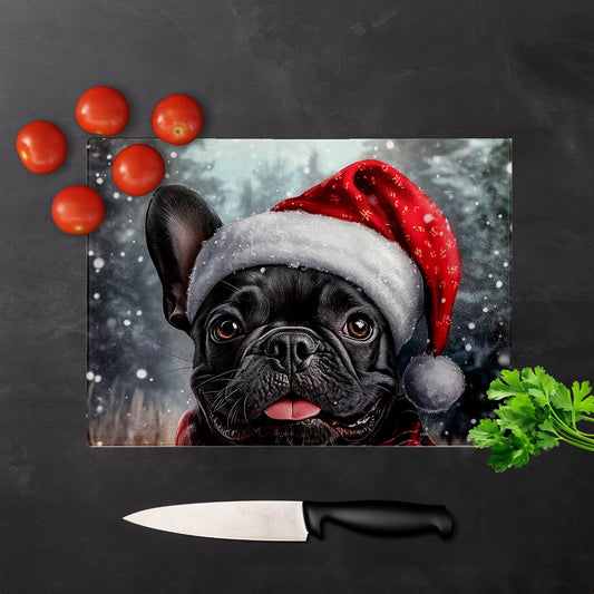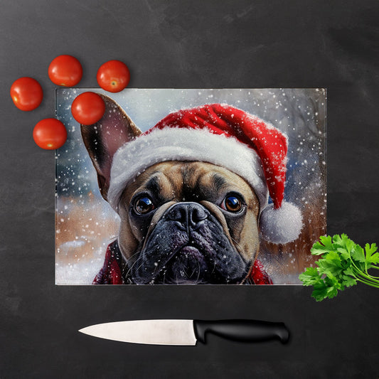 Christmas French Bulldog Glass Chopping Board