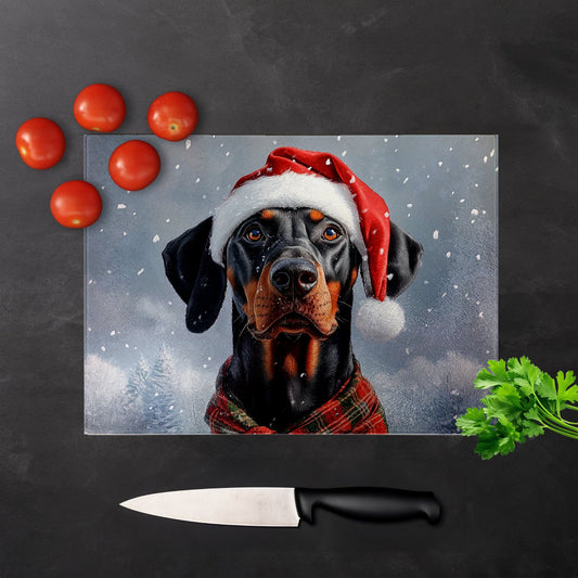 Christmas Doberman Glass Chopping Board