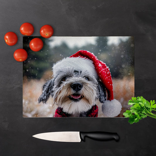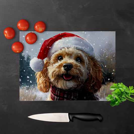 Christmas Cockapoo Glass Chopping Board