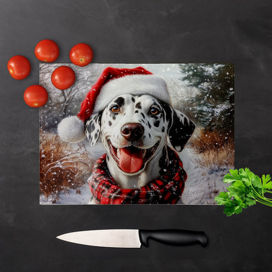 Christmas Dalmatian Glass Chopping Board