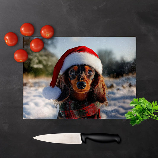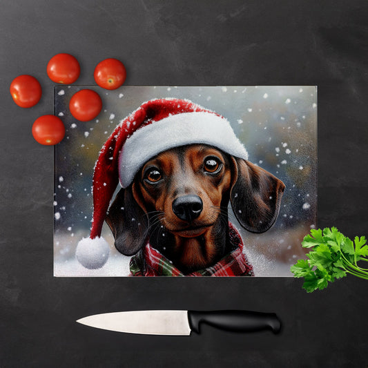 Christmas Dachshund Glass Chopping Board