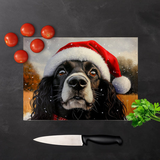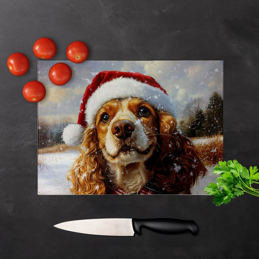 Christmas Cocker Spaniel Glass Chopping Board