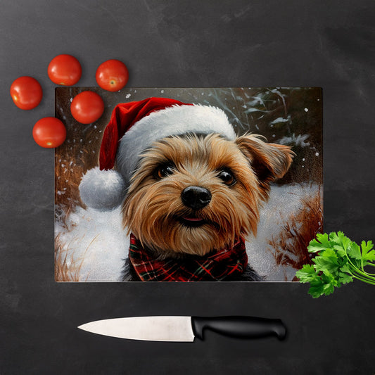Christmas Yorkshire Terrier Glass Chopping Board
