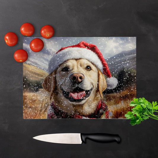 Christmas Yellow Labrador Glass Chopping Board