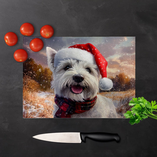 Christmas West Highland Terrier Glass Chopping Board